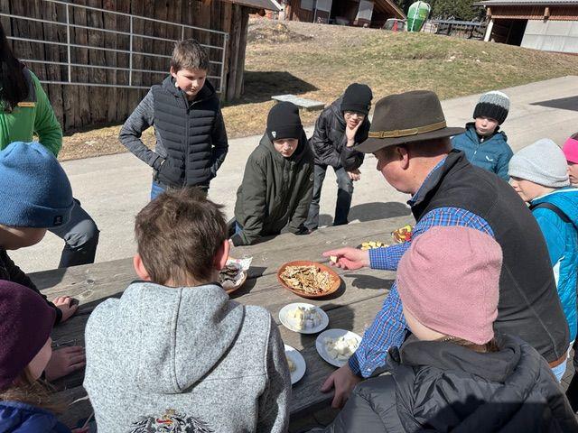 Auch die Herstellung regionaler Lebensmittel wurde anschaulich erklärt. Die Schülerinnen und Schüler erfuhren, wie viel Arbeit und Sorgfalt in den Produkten steckt. Ein besonderer Programmpunkt war die anschließende Käseverkostung, bei der die hofeigenen Produkte probiert werden konnten.