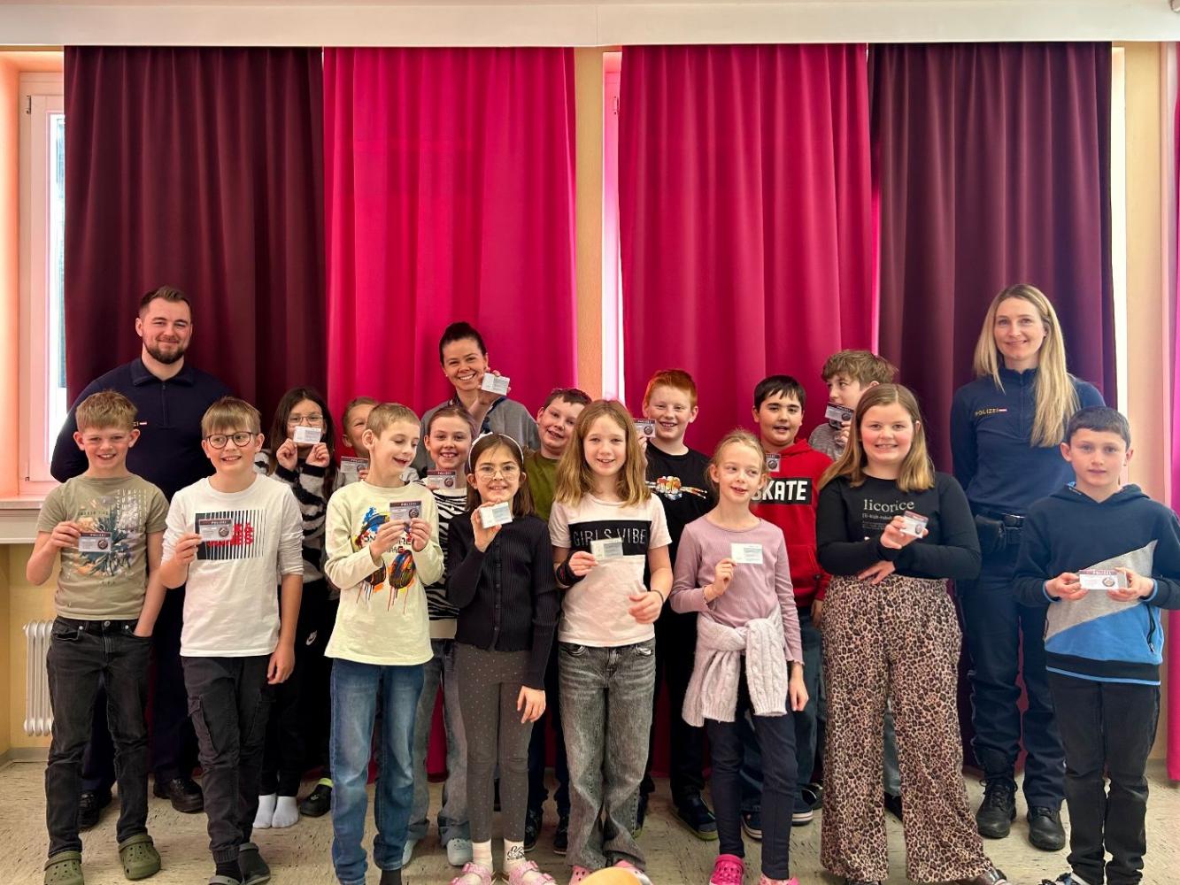 Zum Abschluss konnten die Schülerinnen und Schüler ihr Wissen in einem Bewerbungsbogen unter Beweis stellen. Als Anerkennung erhielten sie stolz ihren eigenen Kinderpolizeiausweis.
