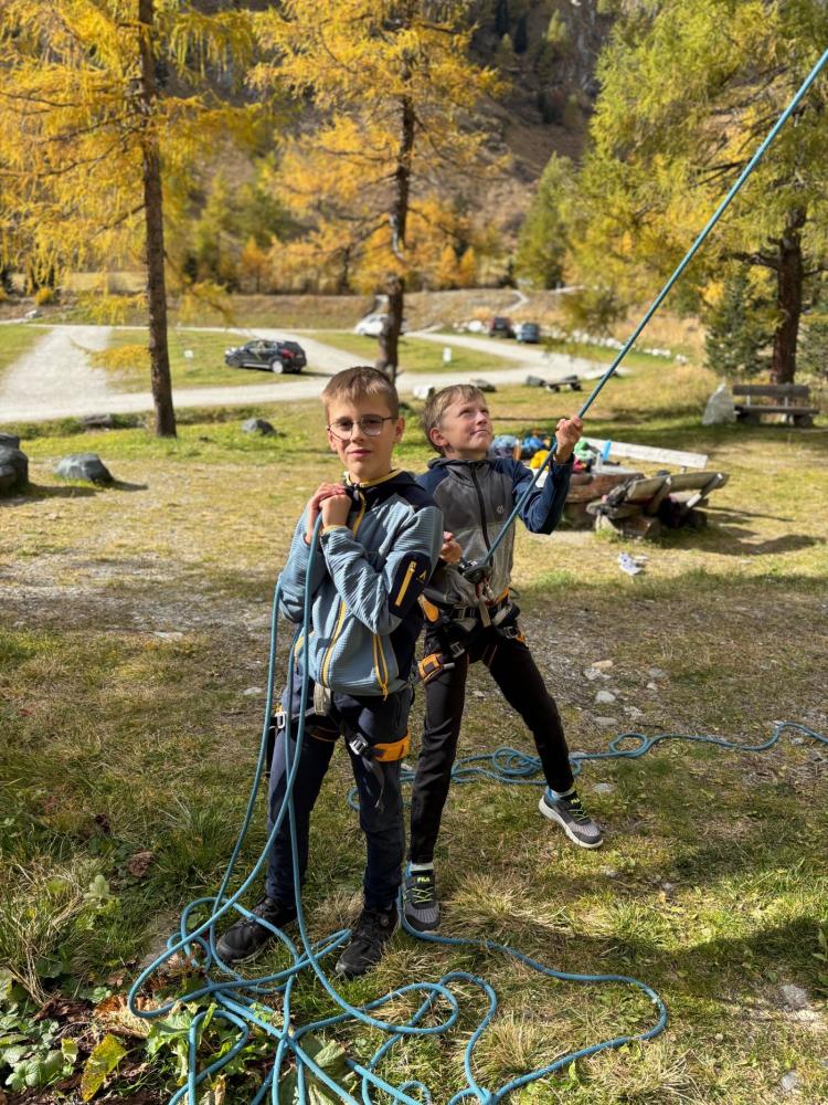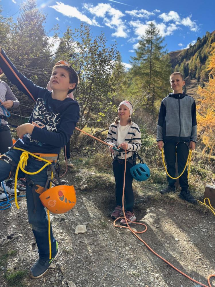 Unter der fachkundigen Anleitung der Bergführer Martin Warscher und Michael Gratz lernten die Kinder wichtige Klettertechniken, sicheres Verhalten am Fels und das Vertrauen ins Team.