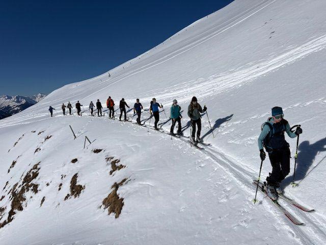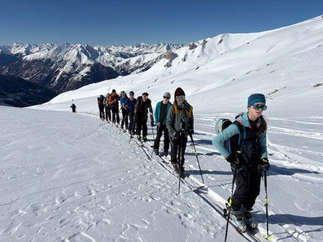 Dabei stand vor allem die Sicherheit im alpinen Gelände im Mittelpunkt. Die Schülerinnen sammelten erste Erfahrungen mit ihren Skitourenskiern, lernten den Umgang mit der Ausrüstung und erhielten wichtige Hinweise zu Verhalten, Spurwahl und möglichen Gefahren am Berg.