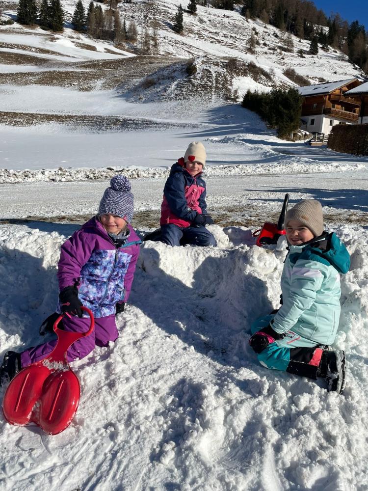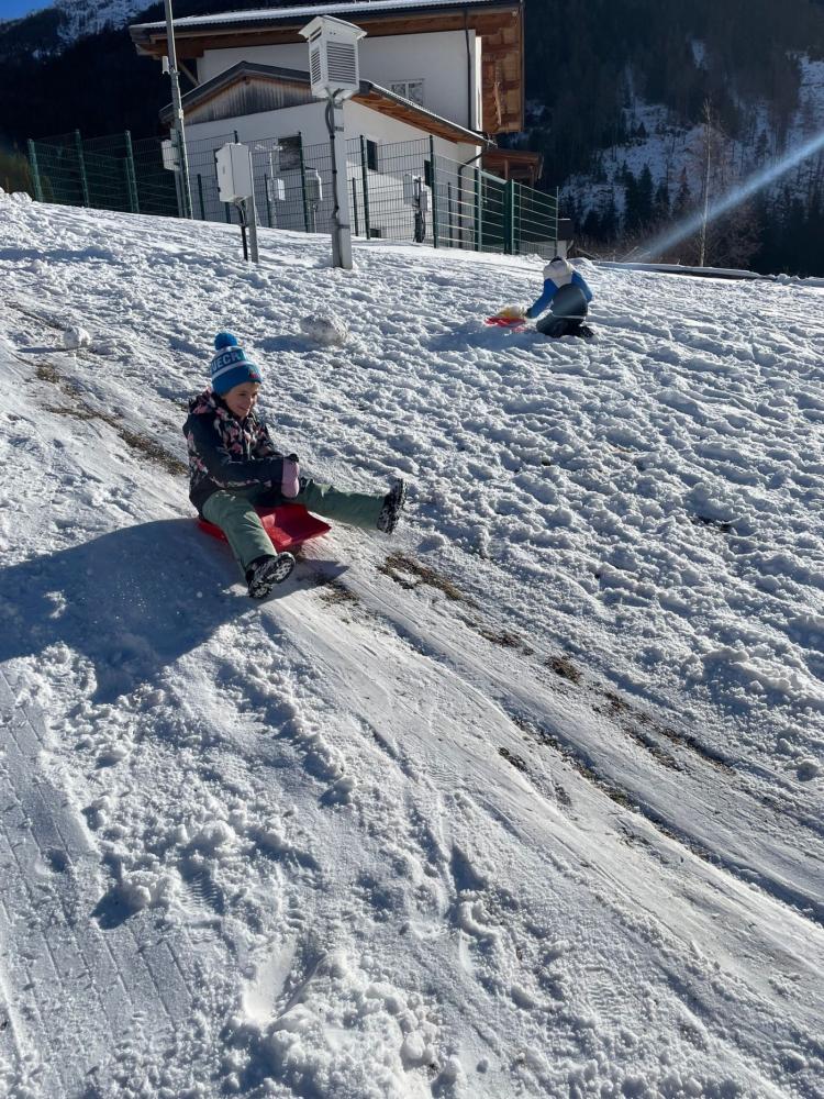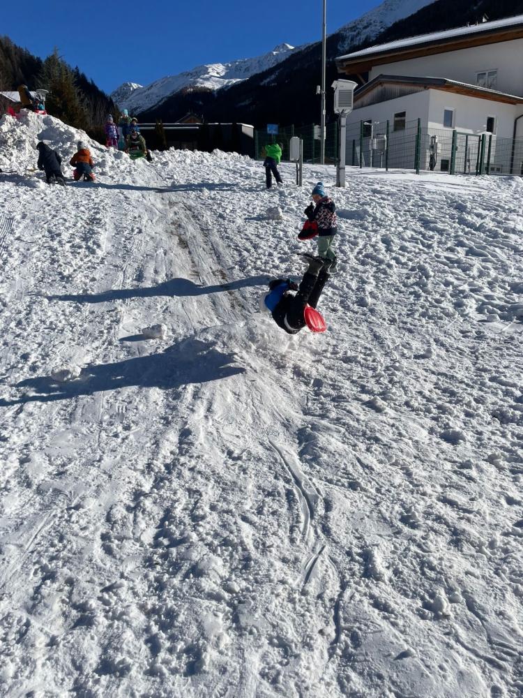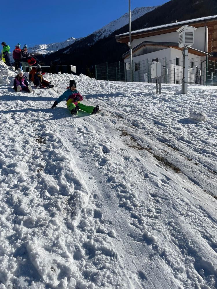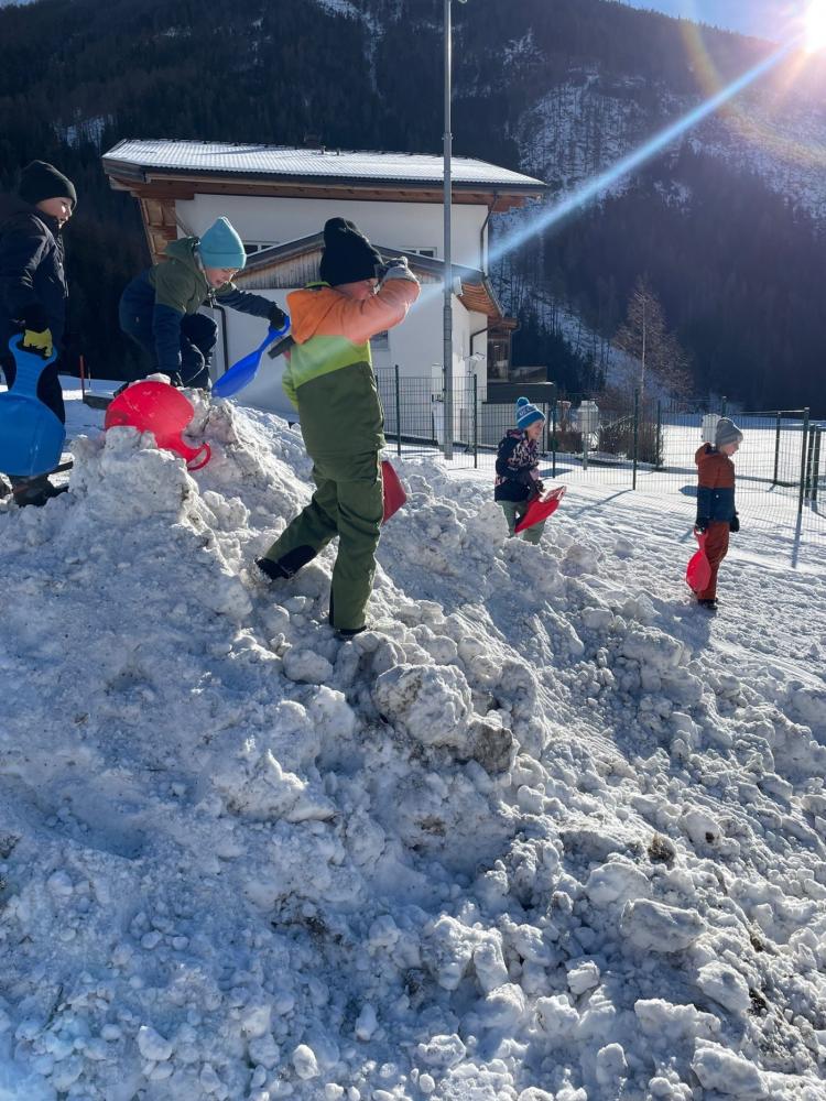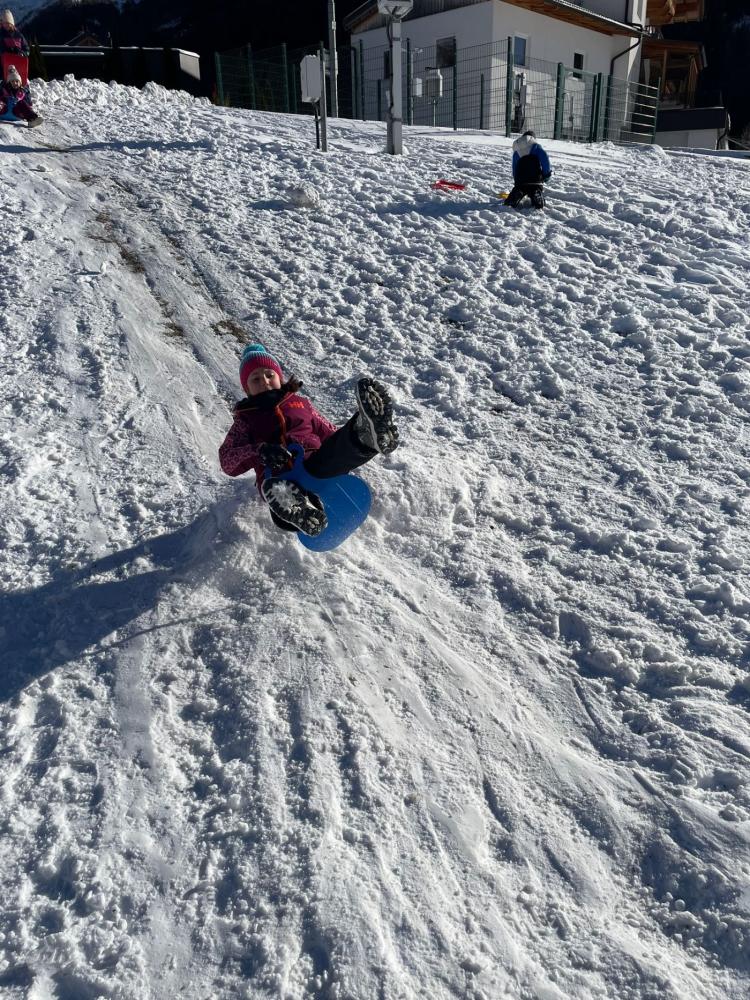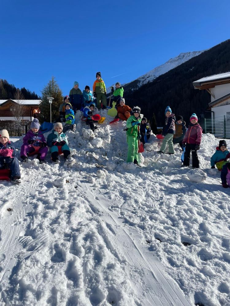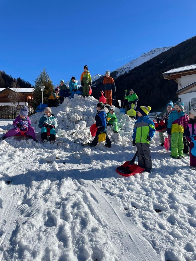 Auch im Turnunterricht geht es manchmal ins Freie. Besonders bei Neuschnee nützen unsere Kinder gerne die Gelegenheit, hinaus ins Freie zu gehen und dort im Schnee zu spielen, Schneemänner zu bauen oder mit ihren "Rutschalen" den Hang hinunter zu fahren.